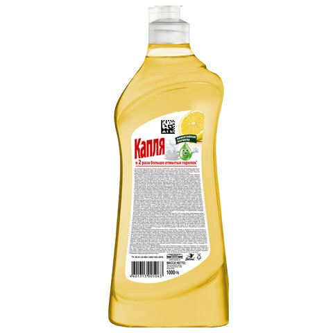 Средство для мытья посуды 1 л, КАПЛЯ VOX активный кислород, "Лимон", 1576