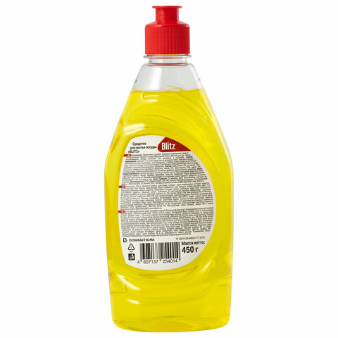 Средство для мытья посуды 450 г, BLITZ "Лимон", флип-топ, 1000022