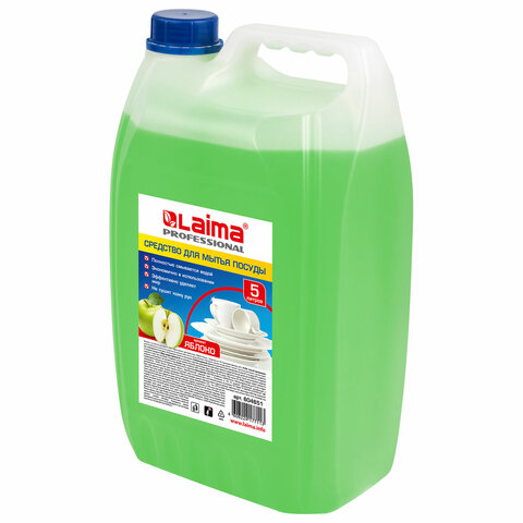 Средство для мытья посуды 5 л, LAIMA PROFESSIONAL, концентрат, "Яблоко", 604651