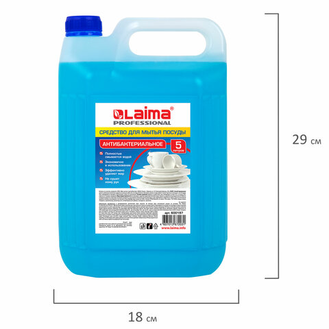 Средство для мытья посуды 5 л, ЛАЙМА PROFESSIONAL, антибактериальное, концентрат, 600197