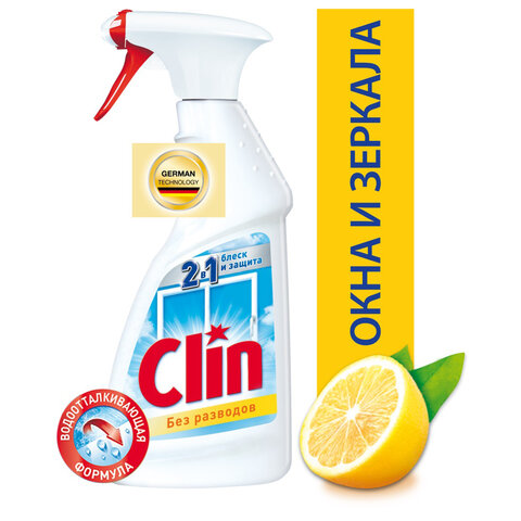 КЛИН 2 в 1 "Блеск и Чистота" с водоотталкивающей формулой предназначен для мытья оконных, витринных и автомобильных стекол, зеркал, кафеля, внешних панелей электробытовых приборов, хромированных и других поверхностей.
