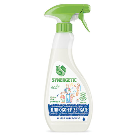 Средство для мытья стекол и зеркал с антибактериальным эффектом 500 мл SYNERGETIC, биоразлагаемое, распылитель, 39027, 107052