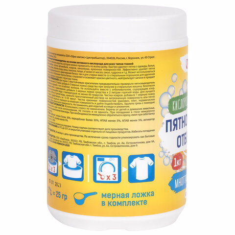 Пятновыводитель-отбеливатель кислородный многофункциональный 1 кг, LAIMA EXPERT, 608256