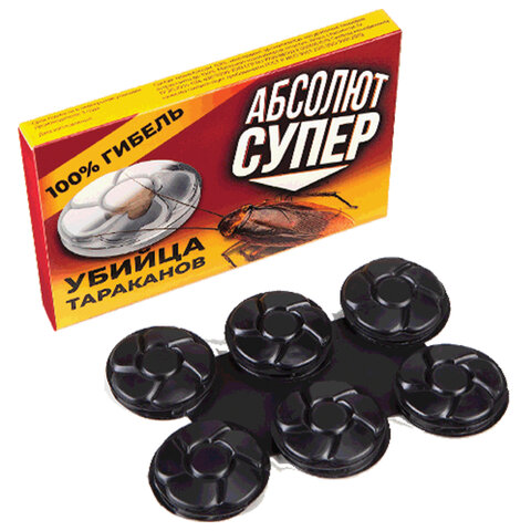 "АБСОЛЮТ СУПЕР" - высокоэффективная приманка в форме таблетки. В состав введен активный компонент, который обеспечивает 100% гибель насекомых. В рецептуру таблетки также введен ингредиент, обеспечивающий поедание приманки.