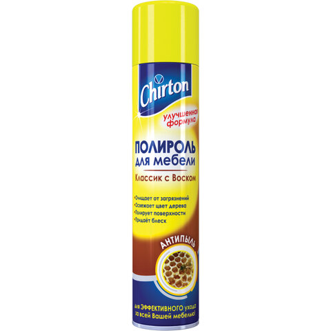 Полироль для мебели 300 мл, CHIRTON (Чиртон) антипыль, "Классик с воском", аэрозоль