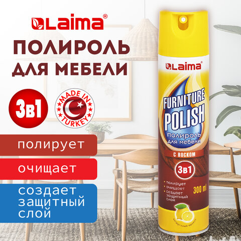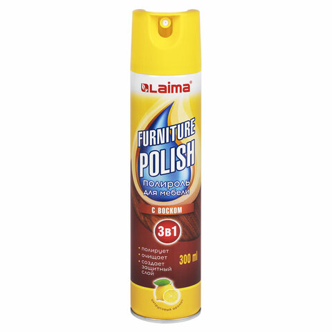 Полироль для мебели с воском и антистатиком 3 в 1, аэрозоль, 300 мл, LAIMA (Аналог PRONTO/ПРОНТО), ТУРЦИЯ, 608503