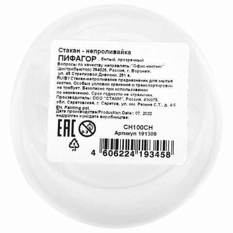 Стакан-непроливайка ПИФАГОР, белый, прозрачный, 191309