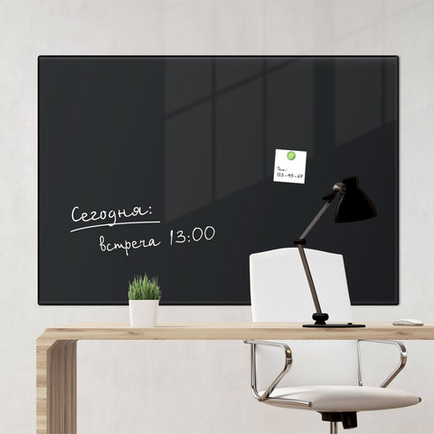 Доска магнитно-маркерная стеклянная 60х90 см, 3 магнита, ЧЕРНАЯ, BRAUBERG, 236748