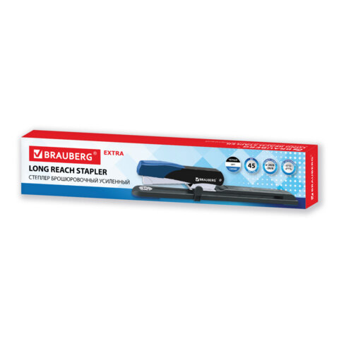 Степлер брошюровочный усиленный до 45 листов, №24/6, №26/6 BRAUBERG "EXTRA", черно-синий, 274241