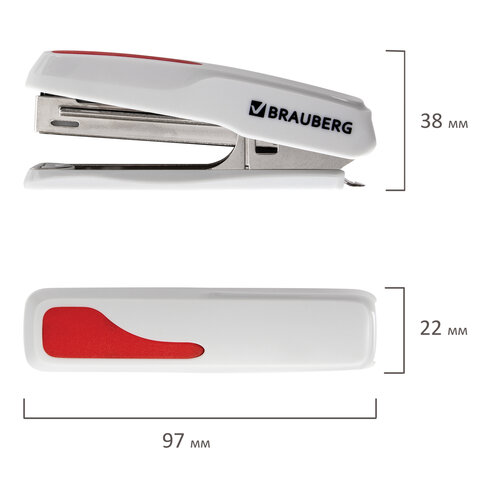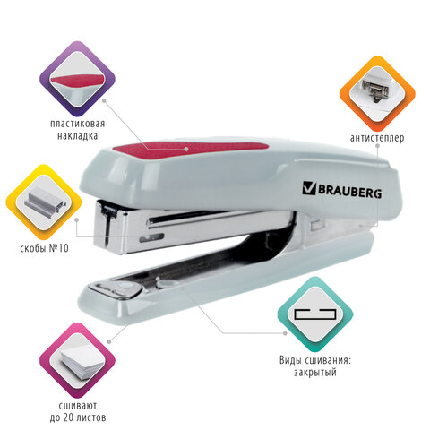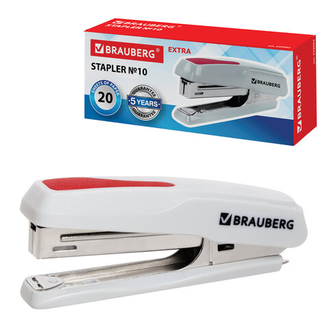 Степлер №10 BRAUBERG "Extra", до 20 листов, антистеплер, серо-красный, 229082