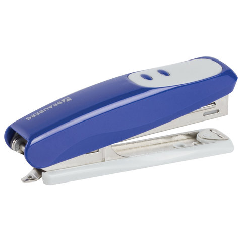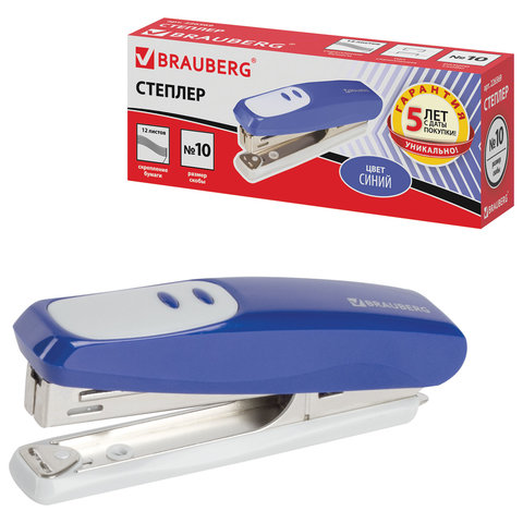 Степлер №10 BRAUBERG "Germanium", до 12 листов, с антистеплером, синий, ГАРАНТИЯ 5 ЛЕТ, 226569
