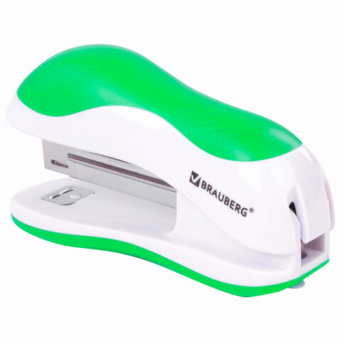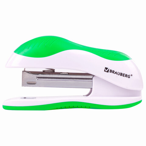 Степлер №10 BRAUBERG "JET", до 15 листов, эргономичный, бело-зеленый, 228580