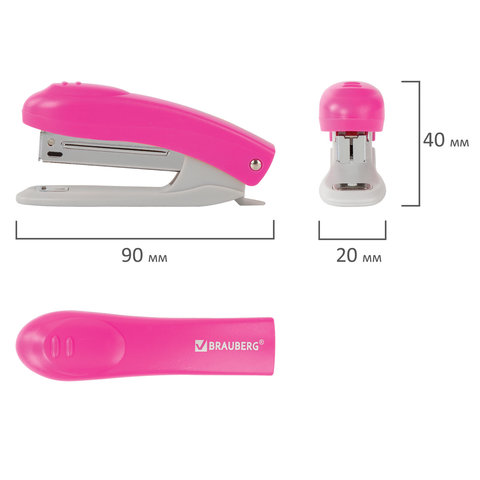 Степлер №10 BRAUBERG "Original", до 12 листов, с антистеплером, розовый, 227767