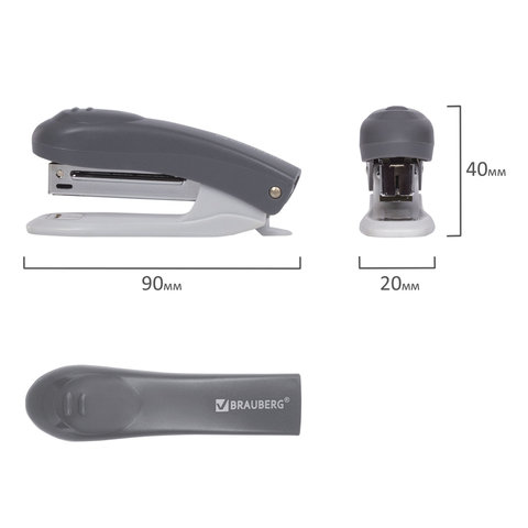 Степлер №10 BRAUBERG "Original", до 12 листов, с антистеплером, серый, 222531