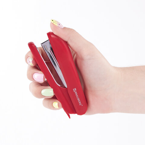 Степлер №10 BRAUBERG "SX-19", до 12 листов, с антистеплером, красный, 228589