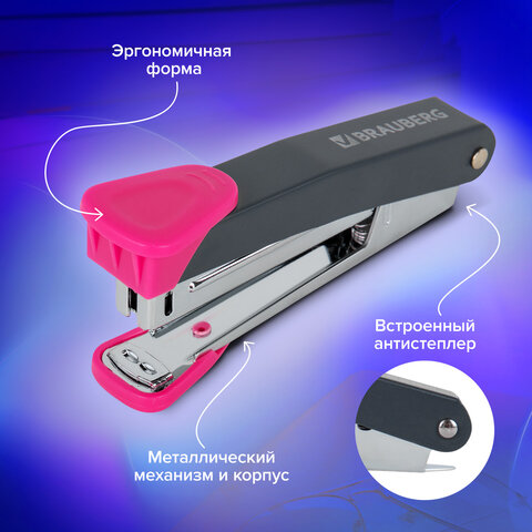 Настольный степлер BRAUBERG "UNIVERSAL GT" № 10 в металлическом корпусе с металлическим механизмом предназначен для надежного и качественного скрепления документов в офисе и дома.
