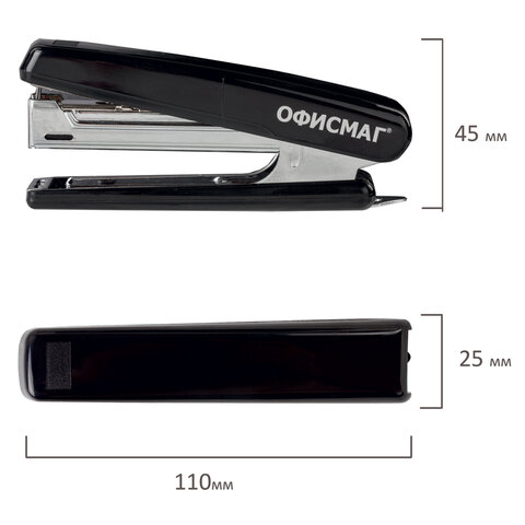 Степлер №10 ОФИСМАГ, до 12 листов, с антистеплером, черный, 229690