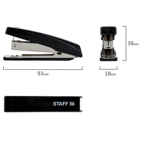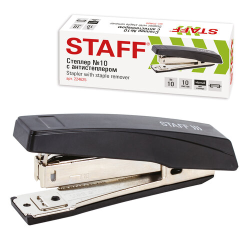 Степлер №10 STAFF "Basic", до 10 листов, с антистеплером, черный, 224625