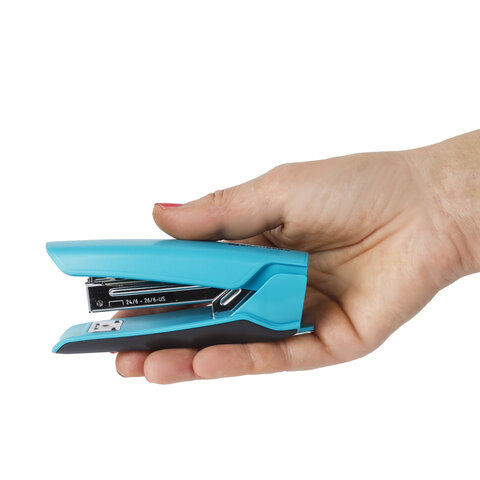 Степлер №24/6, 26/6 BRAUBERG "ULTRA", до 30 листов, с антистеплером, голубой, 228757