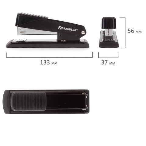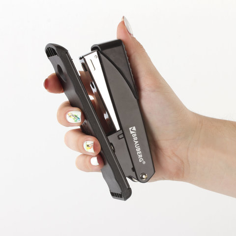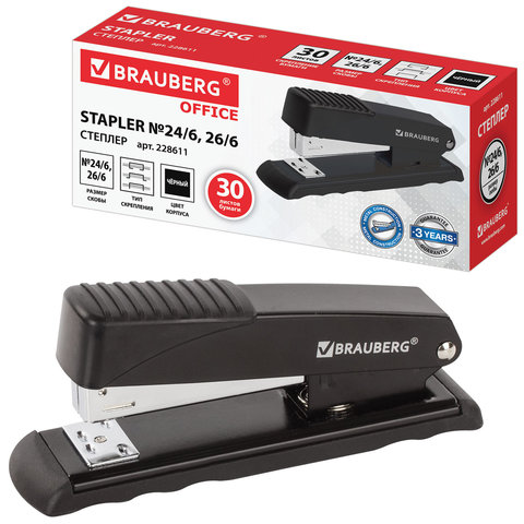 Степлер №24/6, 26/6 металлический BRAUBERG "Office", до 30 листов, черный, 228611