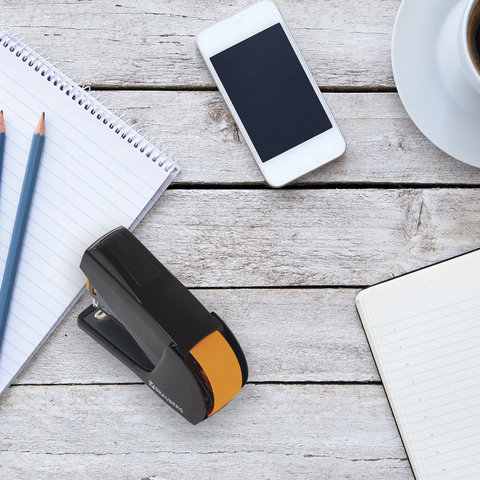 Энергосберегающий настольный степлер BRAUBERG "Easy Press" № 24/6, 26/6 предназначен для надежного и качественного СКРЕПЛЕНИЯ БЕЗ УСИЛИЙ документов в офисе и дома.