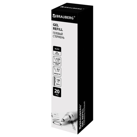 Стержень гелевый BRAUBERG 130 мм, ЧЕРНЫЙ, узел 0,5 мм, линия письма 0,35 мм, 170167