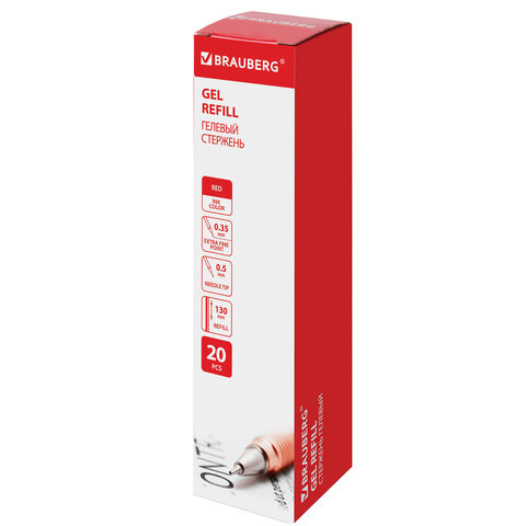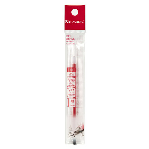 Стержень гелевый BRAUBERG 130 мм, КРАСНЫЙ, игольчатый узел 0,5 мм, линия письма 0,35 мм, 170171