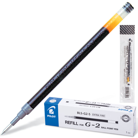 Стержень гелевый PILOT, 110 мм, ЧЕРНЫЙ, узел 0,5 мм, линия письма 0,25 мм, BLS-G2-5