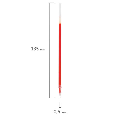 Стержень гелевый STAFF "Basic" GPR-229, 135 мм, КРАСНЫЙ, игольчатый узел 0,5 мм, линия 0,35 мм, 170230