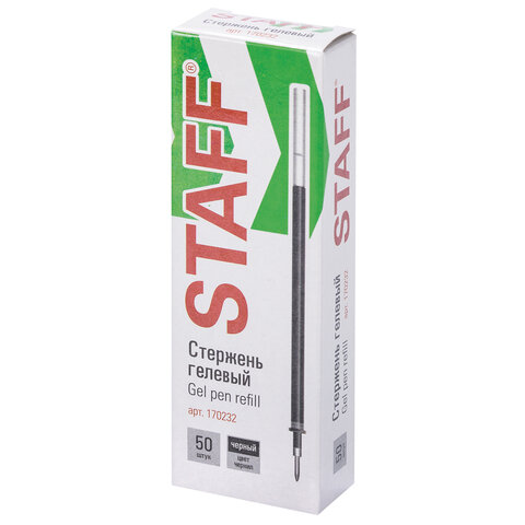 Стержень гелевый STAFF "Basic" GPR-232, 135 мм, ЧЕРНЫЙ, узел 0,5 мм, линия письма 0,35 мм, 170232