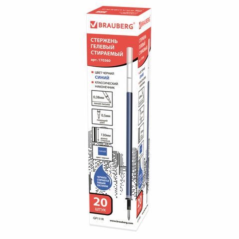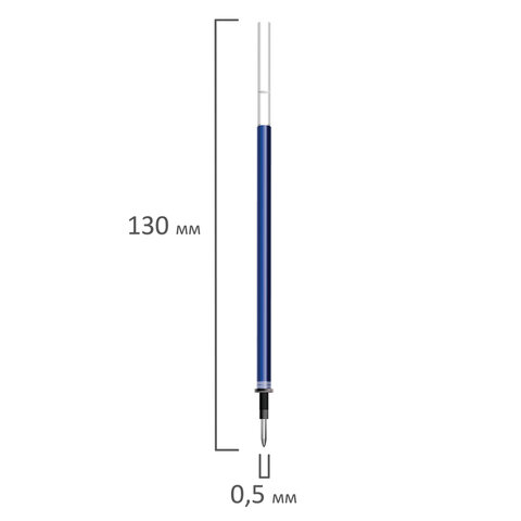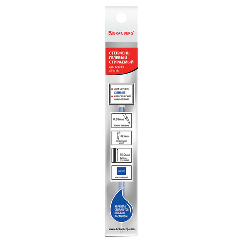 Стержень стираемый гелевый BRAUBERG 130 мм, СИНИЙ, евронаконечник, узел 0,5 мм, линия письма 0,38 мм, 170360