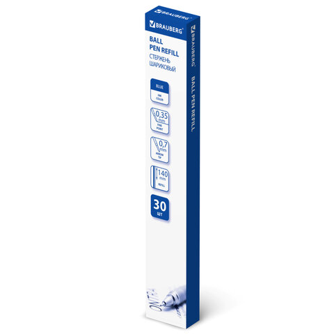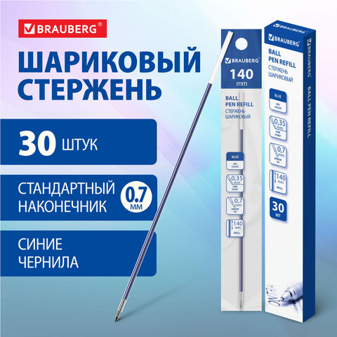 Стержень шариковый BRAUBERG "BP-GT", 140 мм, СИНИЙ, евронаконечник 0,7 мм, линия письма 0,35 мм, 170394