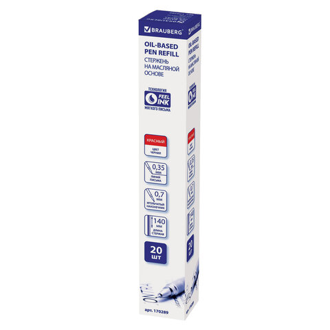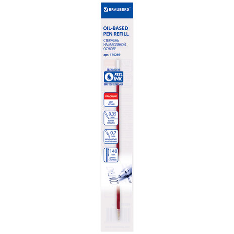 Стержень шариковый масляный BRAUBERG, 140 мм, КРАСНЫЙ, игольчатый узел 0,7 мм, линия письма 0,35 мм, 170289