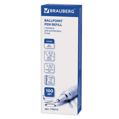 Стержень шариковый масляный BRAUBERG, 145 мм, СИНИЙ, игольчатый узел 0,7 мм, линия письма 0,3 мм, 170213