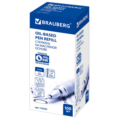 Стержень шариковый масляный BRAUBERG, 145 мм, СИНИЙ, игольчатый узел 0,7 мм, линия письма 0,35 мм, 170235