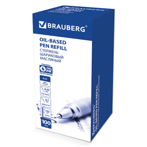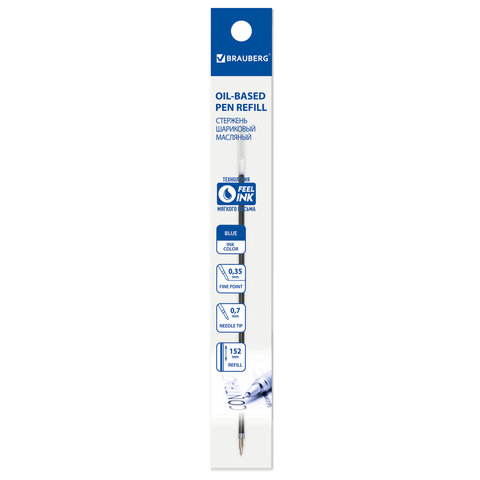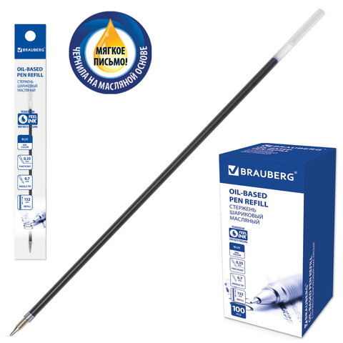 Стержень шариковый масляный BRAUBERG, 152 мм, СИНИЙ, узел 0,7 мм, линия письма 0,35 мм, 170236