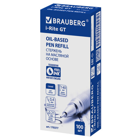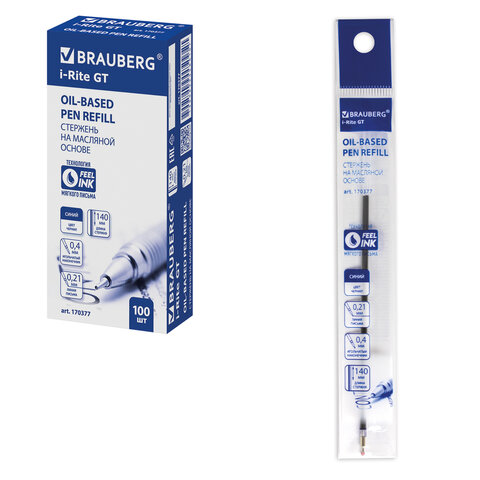 Стержень шариковый масляный BRAUBERG "i-Rite GT" 140 мм, СИНИЙ, игольчатый узел 0,4 мм, линия письма 0,21 мм, 170377