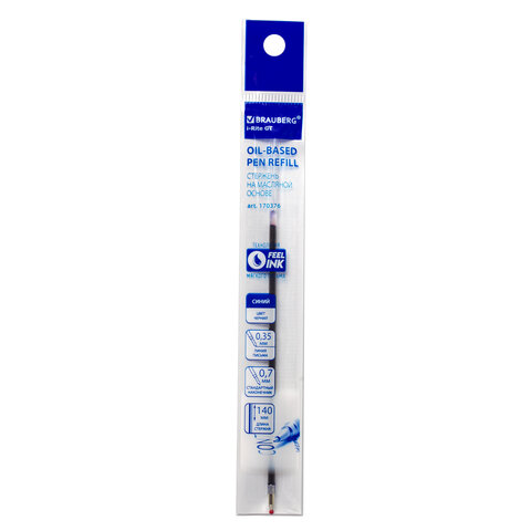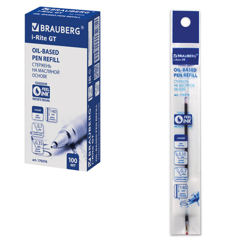 Стержень шариковый масляный BRAUBERG "i-Rite GT" 140 мм, СИНИЙ, узел 0,7 мм, линия письма 0,35 мм, 170376