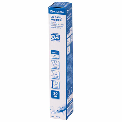 Сменный стержень металлический BRAUBERG для автоматических ручек с поворотным или нажимным механизном типа PARKER. Технология мягкого письма "FEEL INK" гарантирует лёгкое, чёткое и ровное письмо без усилий.