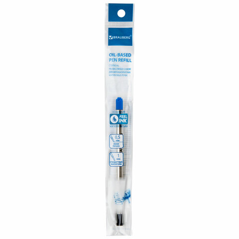 Стержень шариковый масляный BRAUBERG, СИНИЙ, тип PARKER, 98 мм, металлический корпус, линия письма 0,5 мм, 170346