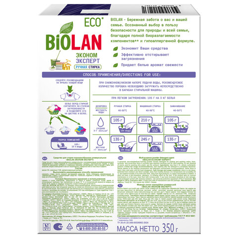 Стиральный порошок для ручной стирки 350 г, БИОЛАН "Эконом Эксперт" (Нэфис Косметикс), 721-4, 61-4