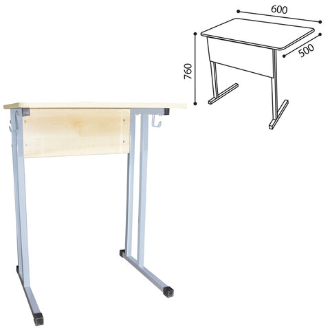 Стол-парта 1-местный нерегулируемый "Умник", 600х500х760 мм, рост 6, серый каркас, ЛДСП клён