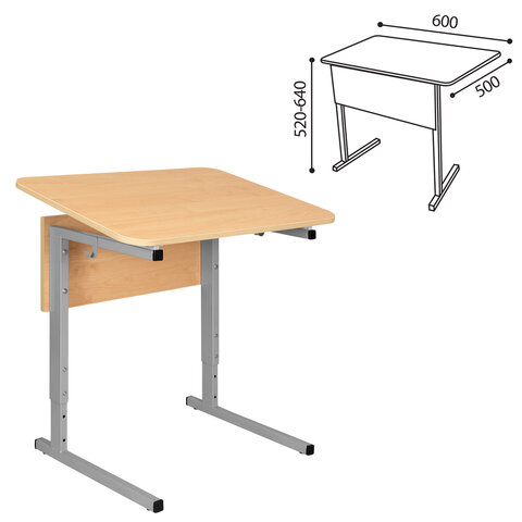 Стол-парта 1-местный, регулируемый угол, СУТ.54-01, 600х500х520-640 мм, рост 2-4, серый каркас, ЛДСП клён