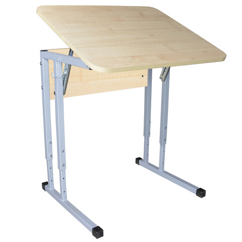 Стол-парта 1-местный, регулируемый угол, "Умник", 600х500х520-640 мм, рост 2-4, серый каркас, ЛДСП клён