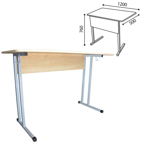 Стол-парта 2-местный нерегулируемый "Умник", 1200х500х760 мм, рост 6, серый каркас, ЛДСП клён