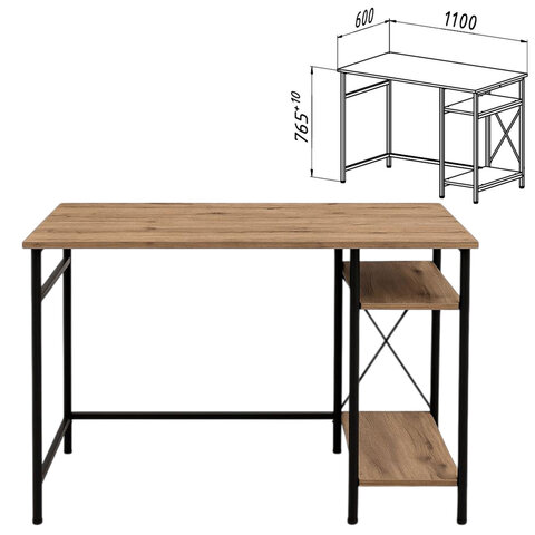 Стол BRABIX "SMART CD-018", 1100х600х765 мм, ЛОФТ, 2 полки, металл/ЛДСП бунратти, каркас черный, 641946
