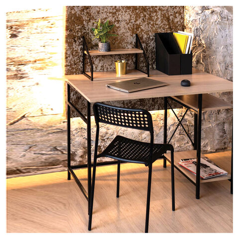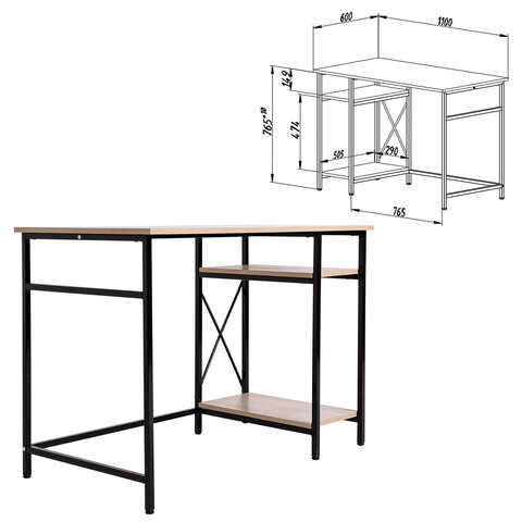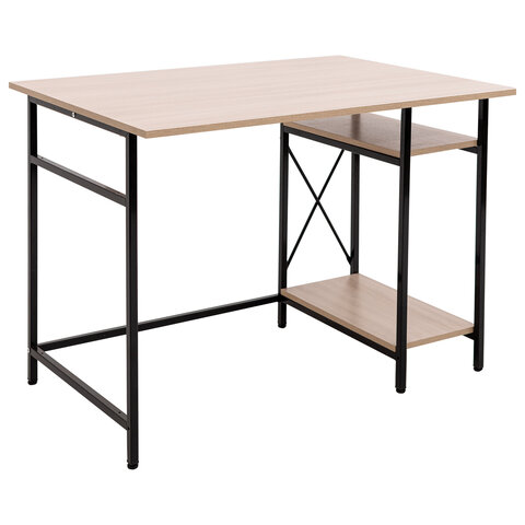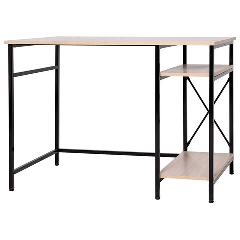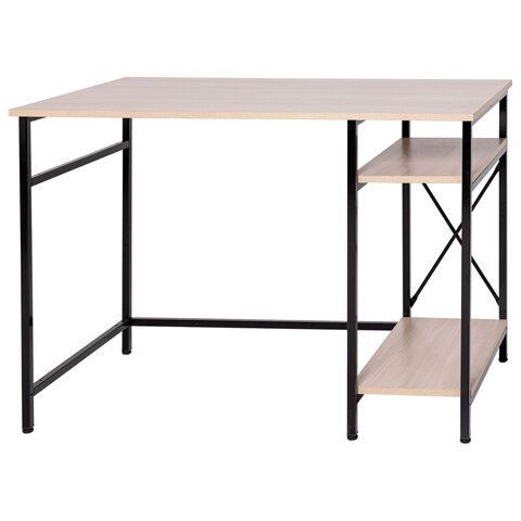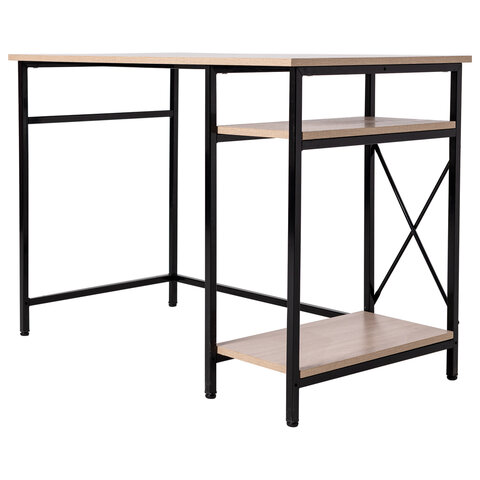Стол BRABIX "SMART CD-018", 1100х600х765 мм, ЛОФТ, 2 полки, металл/ЛДСП ясень шимо светлый, каркас черный, 641945