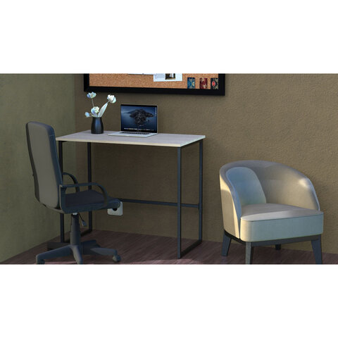 Стол BRABIX "SMART CD-020", 900х500х770 мм, ЛОФТ, металл/ЛДСП ясень шимо светлый, каркас черный, 641949