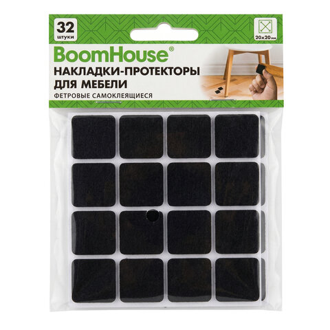 Накладки-протекторы для мебели ФЕТР самоклеящиеся, 20х20мм, черные, КОМПЛЕКТ 32 шт, BoomHouse, 701817