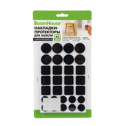Накладки-протекторы для мебели самоклеящиеся НАБОР 43 предмета, черные, BoomHouse, 701829